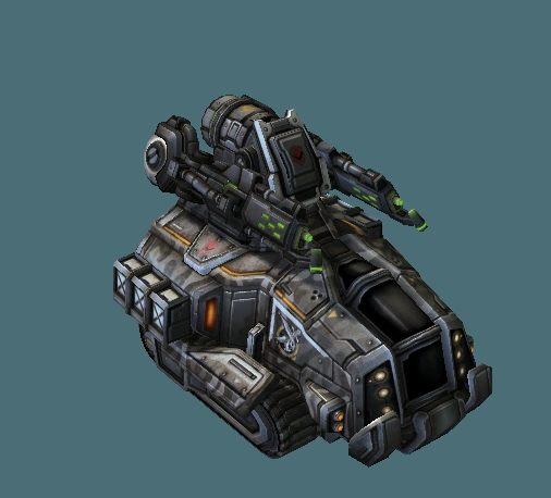 The "militarized colonist transport" is an unused variant of the APC located in the game files. It is camouflaged and mounts a larger turret with twin chemical/napalm sprayers. It was to appear in the Char missions of Heart of the Swarm, where it would use its weaponry to melt the remaining zerg.[11]