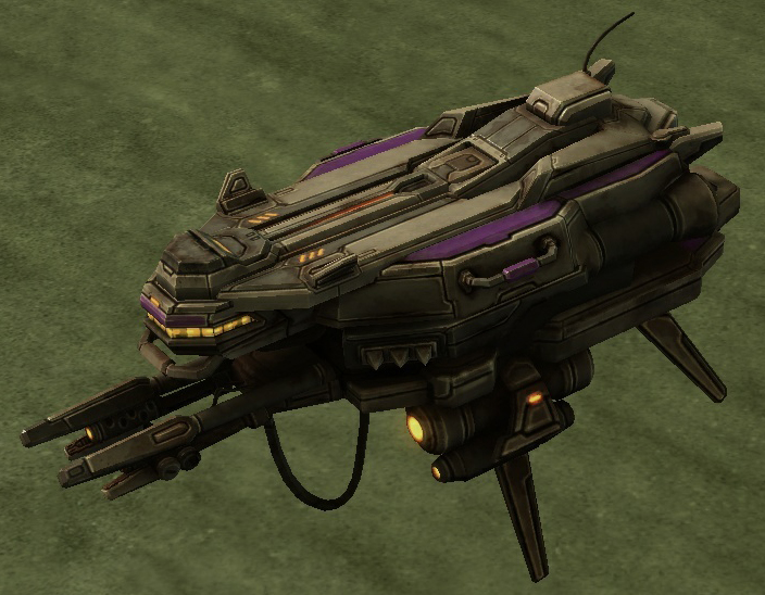 The assault galleon is a terran craft fielded by Mira Han during the End War against Amon. She is able to produce and field her mercenary forces from them, while using them as a powerful frontline ship, able to use polariton torpedoes alongside a suite of assault drones.[1]