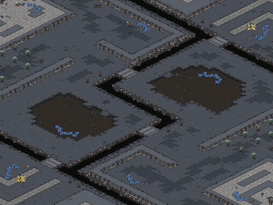 This is a map that really tries a player's expansion skills, as the winning team is the one who can gather the most minerals and gas. There are only a handful of mineral crystals, so before a player builds up an army, they must stock up on resources.