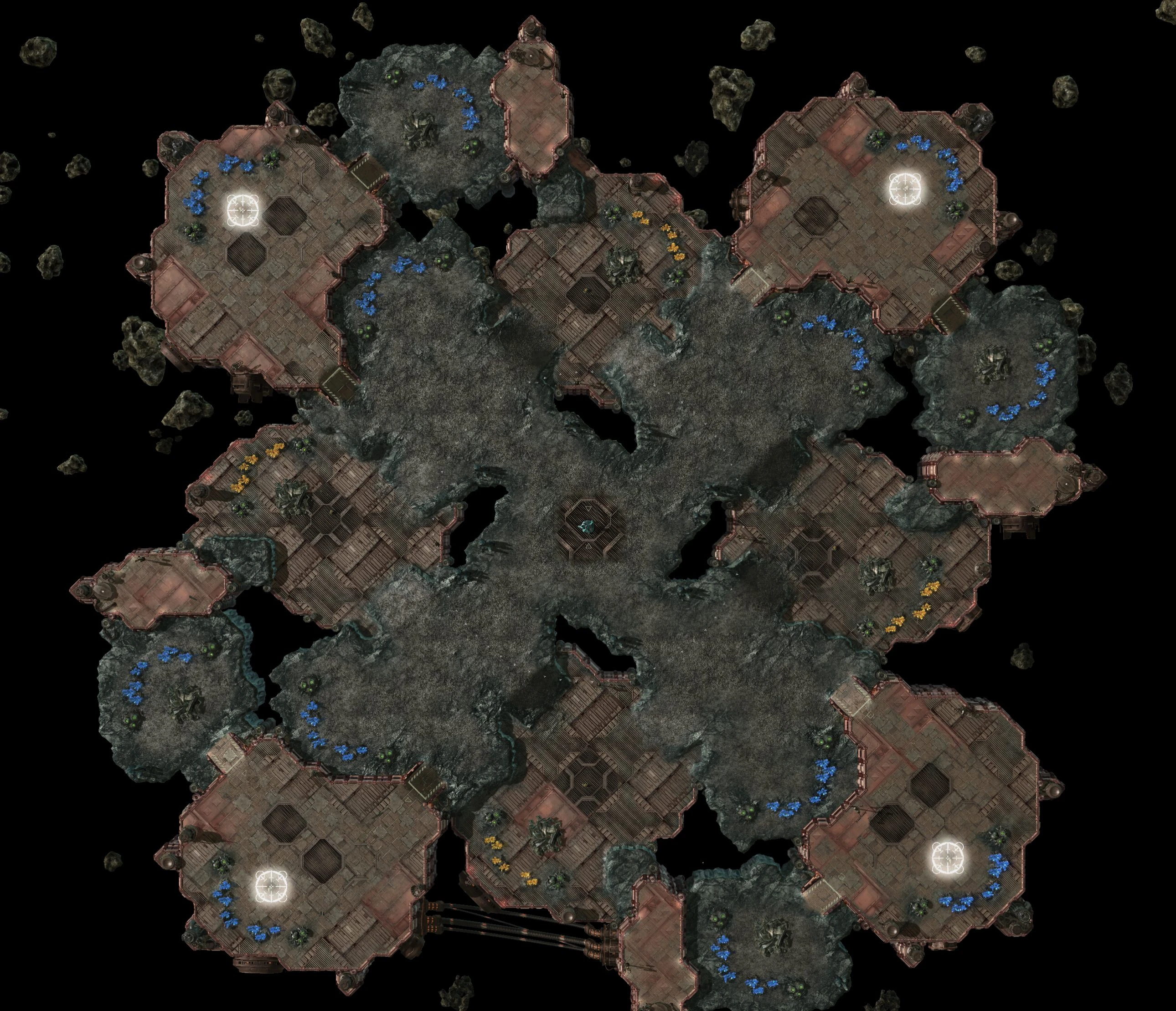 The space platform serves as a multiplayer map in StarCraft II. It is intended for 1v1 or FFA play.