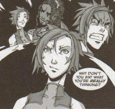 Afterward, Terra's attitude improved; she worked with fellow trainees Kath Toom and Delta Emblock, prompting Toom to ask what happened to the former Nova Terra.[3]