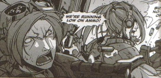 Arriving at the star system, it was discovered that terrans were under attack on Shi and the ship diverted to the world. In the ensuring battle, Terra was assigned to paint zerg hatcheries for a nuclear strike—a strike that Okyl and Cistler launched from the Cyrus. Afterwards, the ghosts and marines deployed on foot to rescue the survivors, all the while keeping their eyes out for surviving zerg. Eyes that soon followed gun sights as the case was, as hordes of zerg emerged from Mandible Canyon, the terrans fighting back to back against the Swarm. The soldiers gained a reprieve and took shelter with the Old Family survivors, but the Cyrus was disabled and grounded.