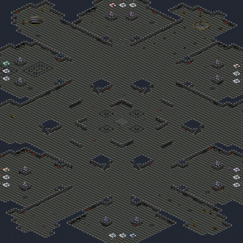 The map is designed for three to six players. When the player brings their drone to a beacon, units will automatically be produced depending on which of the three available beacons the player brings the drone to: their options are to produce zerglings, firebats, or goliaths. Each player must use their units to kill enemy units to earn points, with the first playing to earn 60,000 points winning.