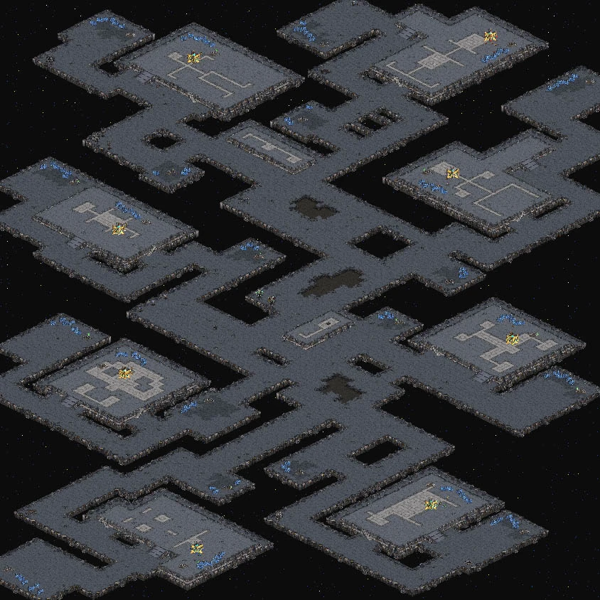 Enigma is a multiplayer map for StarCraft. It supports up to eight players. It presents a space platform that features mysterious key shapes that are motive of research for terran scientists.