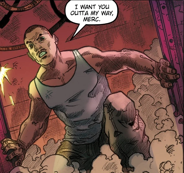 On the ship, Gary watched the news as they reported on the Battle of Adena, blaming them for the conflict, and reporting that all mercenaries on the surface had been killed. Nearby a Dominion battlecruiser warped in, firing warning shots at their dropship. Elms ordered them to flee, saying they could find a buyer for their jorium, to which Gary reacted with crazed hostility, insisting Elms was trying to steal his jorium for herself. Elms punched him in the gut, knocking him down, and he was helped up by Contreras. Elms then set a course for their buyer.[3]