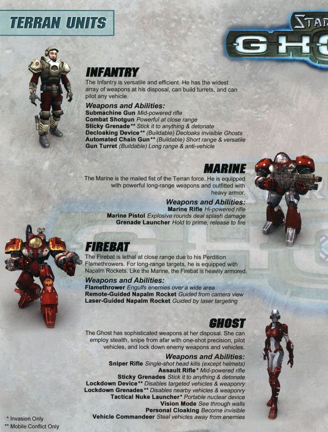 - For StarCraft: Ghost information see: Ghost (StarCraft: Ghost).