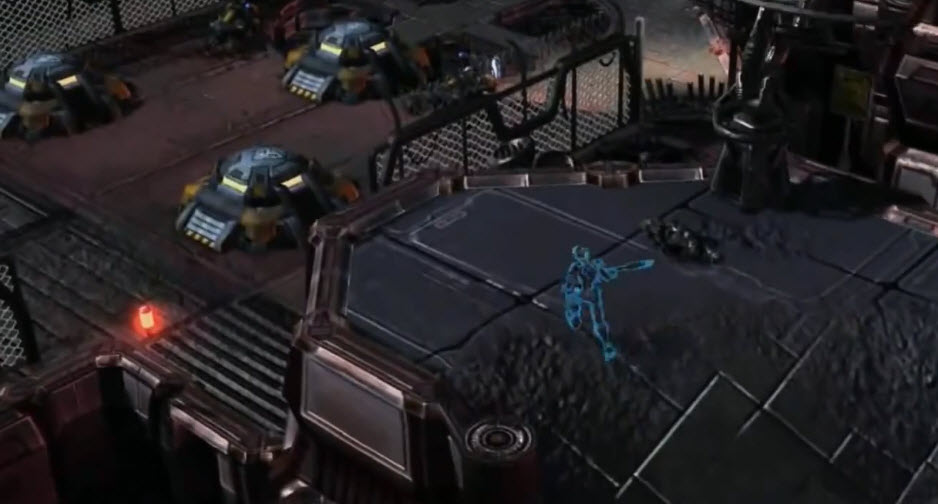 On the third platform, Nova is reinforced by vikings and banshees. Go north with Nova, destroy the marines and Dominate the siege tank, use it to clear out the defenders in view on the right. Take Nova down the ramp below and another siege tank will come into view, destroy it with the banshees. Take Nova up to the ledge cleared out by the siege tank, take out the few remaining units and hack the nuke silo. There is a specter on the narrow path below the silo, it is easy to get to and kill. The southern area is more heavily guarded and difficult to get into, but has an ultralisk and later a thor. The ultralisk will automatically head forth and kill a cluster of marines when released, after which the player can dominate it if they wish. The thor is also a good target to take control of. Use it to clear the path to the psi indoctrinator, taking out another spectre on the way. The eighth spectre is near the top, the thor can get to it but heading along the low ground this way calls down a nuke. With the path to the psi indoctrinator clear, have Nova nuke it, taking out the final two spectres and completing the mission.