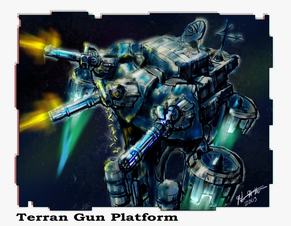 Gun platforms were terran structures planned for StarCraft II. They would utilize three turrets and some propulsion method to keep them airborne. Their concept was created by Rob McNaughton.[1]