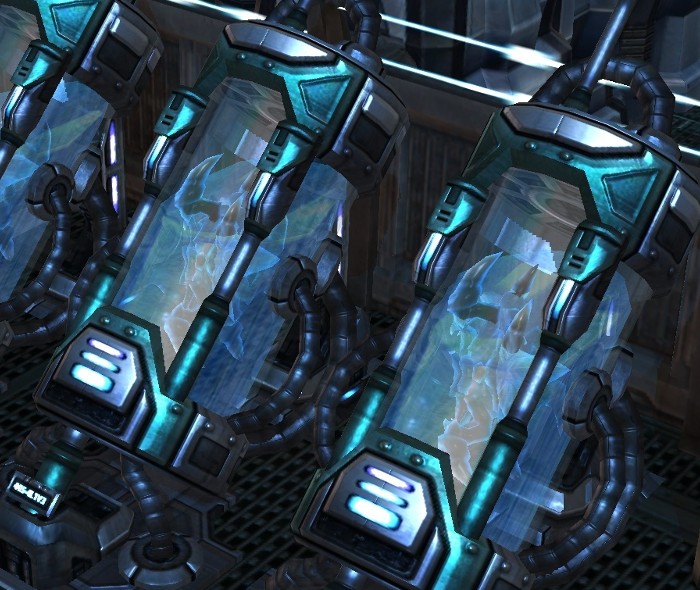 Ulrezaj created strange creatures which he kept in vats in an underground city underneath Aiur, sometime after the Fall of Aiur. Their true nature is unknown, but they have psionic powers and his loyal Tal'darim were taught to trap zerg for him. The creatures were kept secret from the Tal'darim, whom Ulrezaj was draining for their energy.[19]