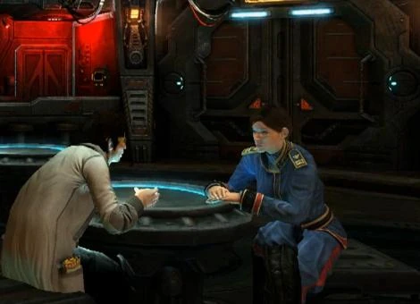 In Wings of Liberty, she is sometimes seen on the bridge of the Hyperion[5] and in the cantina.[6]