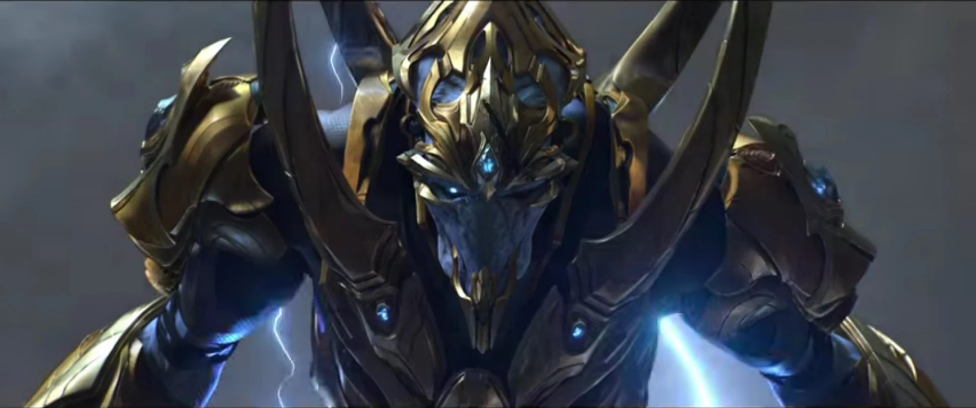 Kaldalis takes pride in the history of the protoss and the Khala, though he does not express prejudice towards the Nerazim, and believes that driving them away was a sin.[2] A scar runs down his left eye, preventing him from using it. He has shown himself to be a willing and capable warrior.[4]