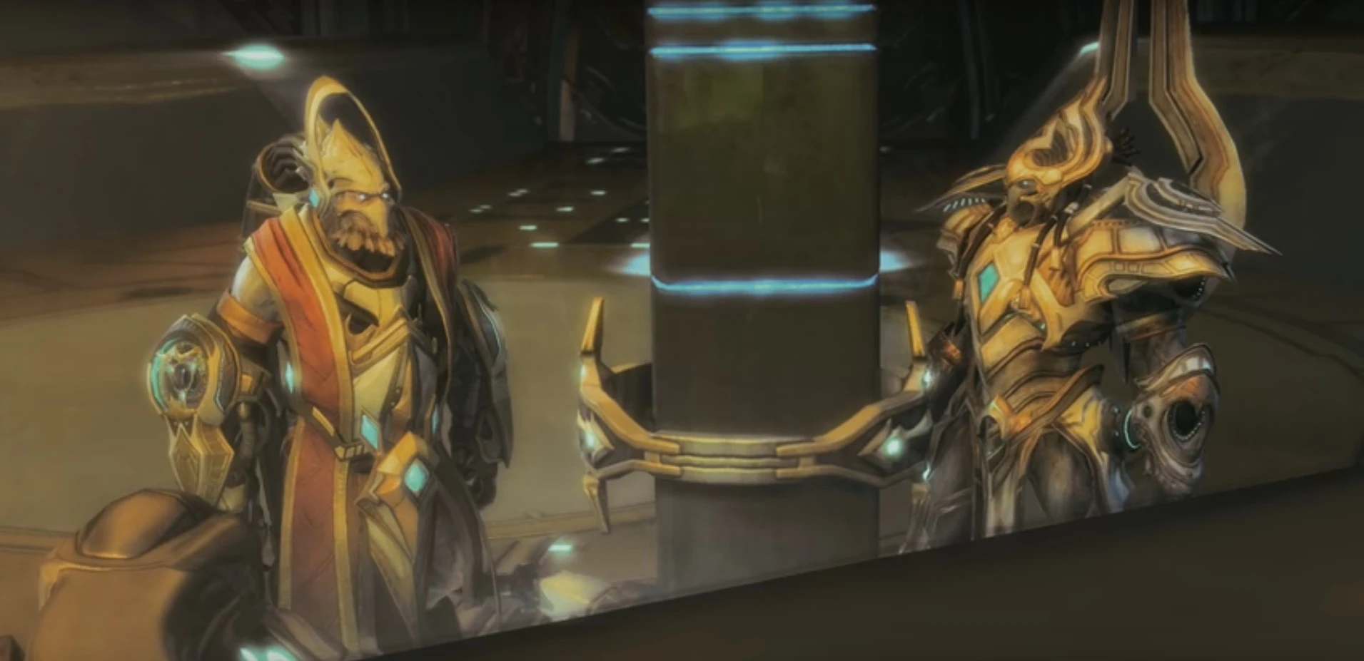 Meanwhile, Karax’s research noted the device took Purifier technology, and Karax realized that they were likely used to replicate the Khala. Not long after he was contacted by Talandar, who gave a physical description of who he thought had made the devices, and Karax warped to join him at the site of the lab where the devices were being created, but found that the lab quickly abandoned. Papers inside confirmed Karax’s fear, as they were writings that promised a new Khala and resented Artanis’s destruction of it.