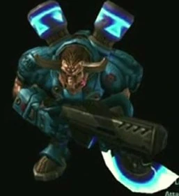 L80ETC was in early builds of Heroes of the Storm. he had a thick skin and benefited from strength items. He had a short-ranged gauss rifle.[1] In the current version of the game, he has been replaced by Elite Tauren Chieftain—effectively the same concept, but no longer a tauren marine.[6]