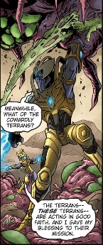 - ↑ Watrous, Valerie (w), Manual, Garcia (i) and Javir Mena (c). (January 5th, 2018). StarCraft II: Shadow Wars: Part 5. Blizzard Entertainment. StarCraft II: Shadow Wars: Part 5 Accessed 2018-01-07.