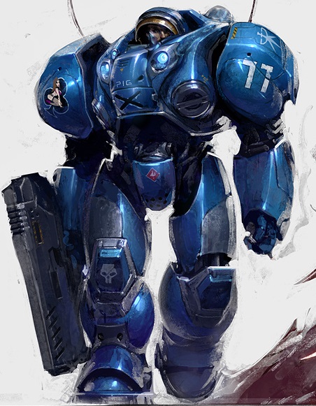 UED marines, known as "smiths,"[18] bore similar-looking equipment to the same standards as their colonial counterparts, and were supported by elite combat medics in their tactical units. The improved survivability of UED marines inspired Koprulu terran forces to adopt medics in a similar fashion.[4] Their armor was an advanced CMC-400A Powered Combat Suit, which contained advanced power cells, a heavy outer and inner shell, and an onboard artificial intelligence named the CMC 5000 "HAITE" System.[18] At least some marines among the UED Expeditionary Fleet were controlled through aggression inhibitors.[19]