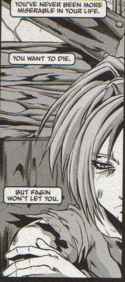 Terra was brought before Fagin but, despite being in a fragile state of mind, refused to serve him. Reading minds she realized that Fagin's chief lieutenant, Markus Ralian, wanted him dead. However, Terra was unable to intimidate Fagin nor provoke him to kill her. Instead, Fagin let Terra go and ordered the shopkeepers not to feed her. Fagin was confident that starvation would force Terra to serve him.