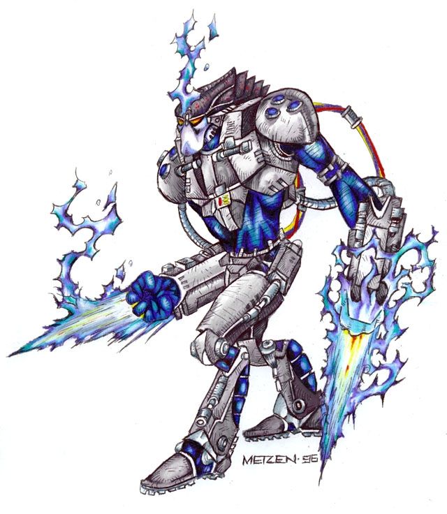 Protoss armor contains teleportation technology which whisks the warrior away to safety when they are injured to the point of death.[64] Injured and crippled protoss can be transformed into cybernetic warriors.