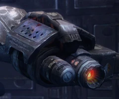 The Quad K12 "Punisher" 40mm grenade launcher is the primary weapon of the marauder. The marauder mounts a pair of K12s on each arm,[1] each of which can deploy hundreds of grenades. The K-12 was originally designed to crack hardened-zerg carapaces, but its payload are able to decimate structures and armor as well.[2]