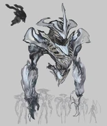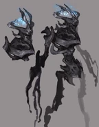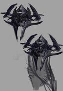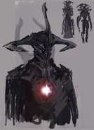 When exploring how to portray Narud in the cinematic "Shifting Perspectives," the cinematic team explored what it would look like to show Narud's true xel'naga form. Hybrid-like concepts were designed, varying from monstrous bulbous forms to more elegant "star god" forms.[73] There were a large number of talks between the story and development teams in order to get the design for a shapeshifter Narud the way they wanted.[74] As development went on, it felt more thematically appropriate to the team to show Narud shapeshifting in his battle against Kerrigan. In the end, it was decided to have Narud take the form of Kerrigan to symbolize her killing her old self.[75]