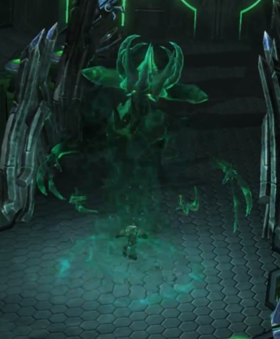 The first phase of the war ended with Kerrigan's defeat and de-infestation at Char due to the device's effects.[60] Hybrid located nearby collected the energy which could be later used to resurrect Amon.[43][44]