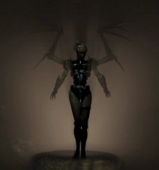 Sarah Kerrigan was infested by the zerg as part of an experiment. Her new appearance was personally designed by Abathur, though the process was painful[40]. The transformation occurred within a chrysalis and was completed on Char. Her stature increased, and she gained an armored carapace, claws, and "wings" usable as weapons and effective against psi-blades. Kerrigan was also able to cloak, despite no longer wearing a ghost's hostile environment suit[31]. Unlike most infested terrans, Kerrigan retained her intelligence and at least some part of her personality[46]. Her DNA also received telomeric additions[193].