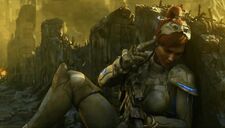 One of Kerrigan's missions involved the newly formed Umojan Protectorate. She took position above a political rally. She lined up her sights on the target, even as a child obstructed her view. She was seemingly able to make the kill.[19]