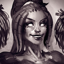 With StarCraft II, Kerrigan's design was established by Blizzard's cinematic department, and while the game design team was allowed a degree of latitude with how she'd be portrayed in the game engine, the design had to remain faithful to the high-resolution version. In-game, her athletic proportions were very subdued when viewed from a distance, and her feminine features did not stand out enough to clearly present her as a female character. A quick resolution to this for the real-time artwork was increasing Kerrigan's breast size and the width of her hips. A drawback of the design was the zerg-arms that protrude from Kerrigan's back which interfere with her silhouette and distracts from her slim waist. Creating the in-game version of Kerrigan was a balancing act between readable, overbuilt proportions while maintaining strong feminine features. The in-game model was reiterated numerous times to get the balance right[209]. Kerrigan's de-infested form in Heart of the Swarm had similarly exaggerated features in the game engine to help her stand out[210]. Her primal form in the game was based on the Wings of Liberty model, but was slightly tweaked with some new texture work and slight geometry adjustments[211].