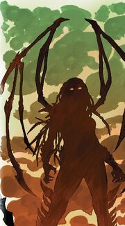 Kerrigan was placed within a chrysalis by the creature Abathur. The process was painful, and she suffered much physical damage.[40] She was entrusted to the care of a cerebrate and its brood,[41] and was taken to Char,[37] where her telepathic powers reached out and contacted Mengsk and Raynor.[42] The psychic link with Raynor would persist.[31]
