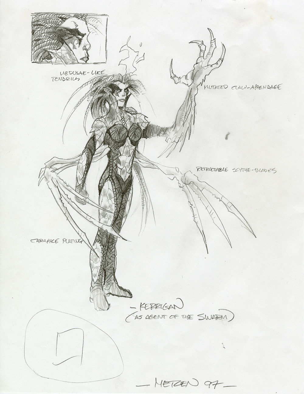 An early concept sketch of Kerrigan as the Queen of Blades