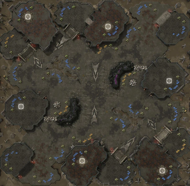 Slaying Field is a 3v3 map created for the 2016 season 2 ladder of Legacy of the Void. It is still used in the current map pool.