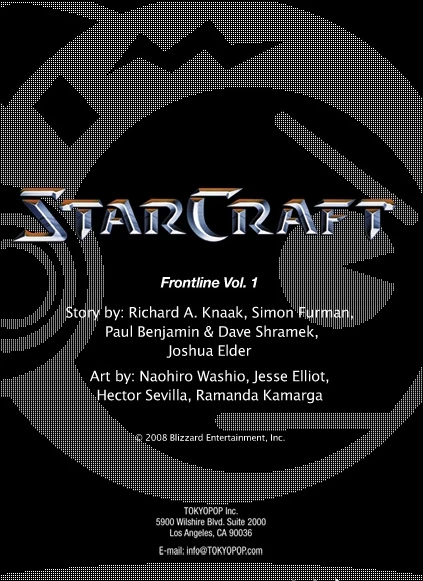 - ↑ Knaak, Richard A. (w), Washio, Naohiro (p, i). "Thundergod." In StarCraft: Frontline: Volume 1 (paperback binding), pp. 48–93. Tokyopop, August 1, 2008. ISBN 1427-80721-3.