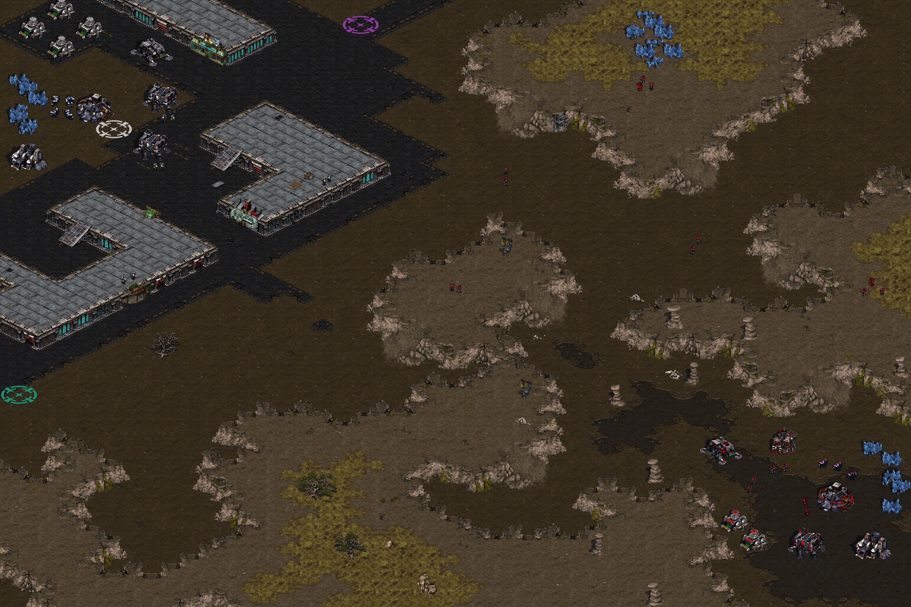 The multiplayer mode of the demo is very limited, the player is able to play only terran, and has only one map available, "Byways" (2 players, badlands tileset).