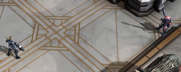 Stone then serves as a boss in the level "In the Enemy's Shadow." He will teleport around the room, using snipe on Nova if she is revealed, and EMP on her to reveal her if she is cloaked. The snipe can be blocked by running behind the statues in the room. Stone starts with a defensive matrix on him, capping all damage done to him at 10 until the shield is dropped. As such, it is best to not use abilities on him while the shield is activated.