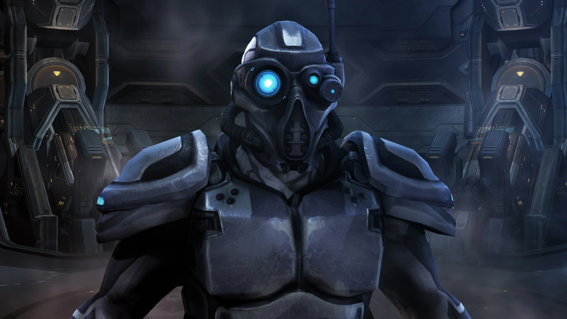 Years after the End War, his profile stated that he was sent to spy on a Defenders of Man installation.[1] In reality, Stone had been transferred with Nova Terra to help the Defenders of Man by orders of the Terran Dominion. The two participated in an operation on Antiga Prime, where they were to place anti-zerg devices on the surface. However, Stone and Nova discovered these devices were actually psi-emitters. Stone noted that the mission files had not been scrubbed, and they could use them to show the Dominion what the Defenders of Man were really doing. However, Stone and Nova were captured, and Nova was mind wiped.[6]