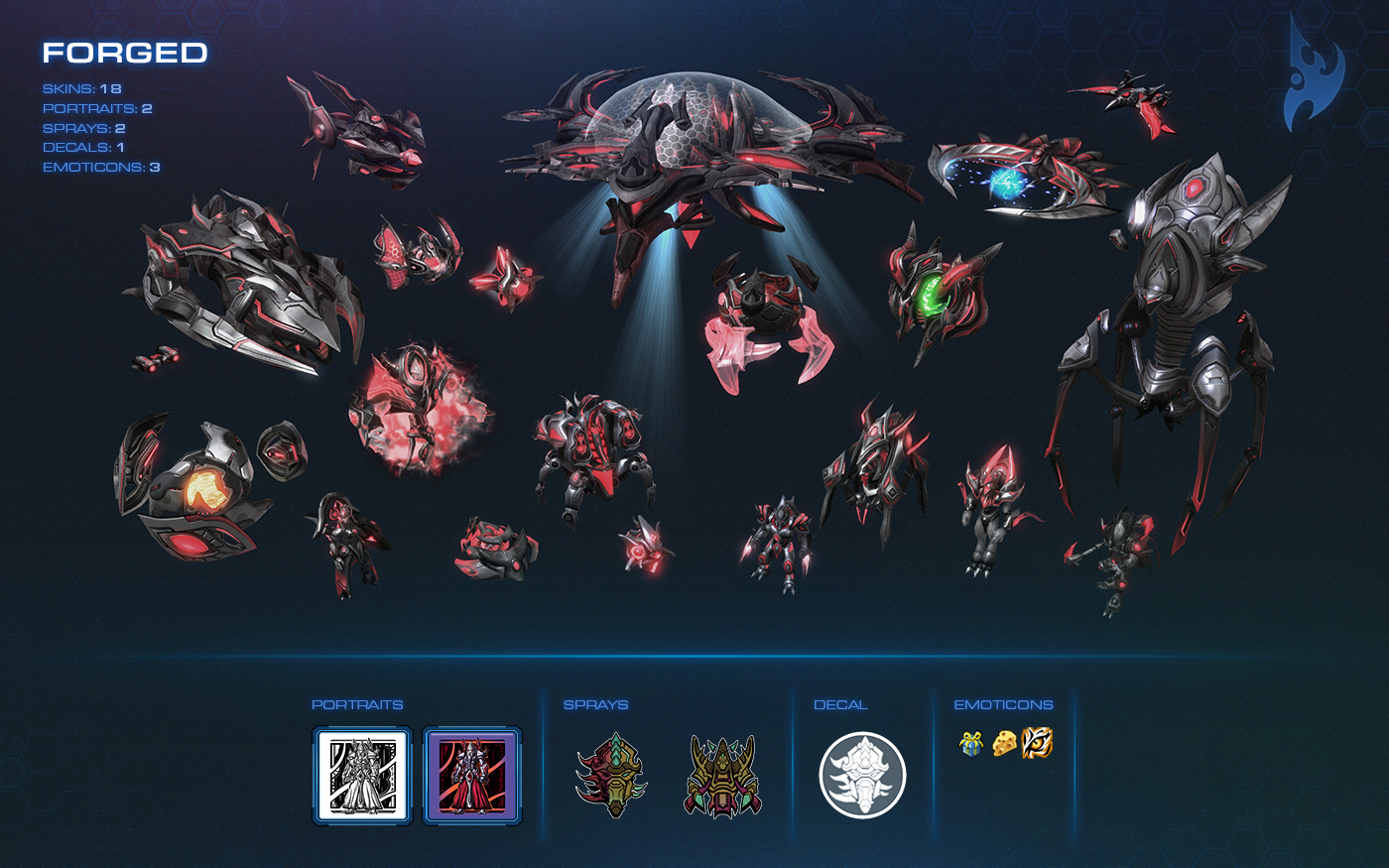 - A full Tal'darim skin set, named the "Forged" is available as a reward for protoss BlizzCon 2017 War Chest.[57] Tal'darim building skins were introduced in the Katowice 2019 War Chest.[58]