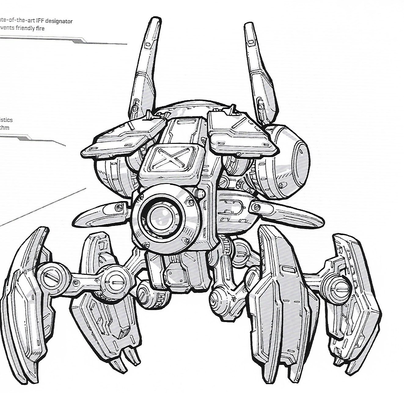 A support unit,[1] the widow mine is a quadrupedal device that represents the next step in Dominion automated weaponry.[2] It is just under half as tall as a terran wearing CMC armor.[3] It is controlled remotely, piloted into a contested area and then set to activate when enemy units draw near. Once triggered, the widow mine launches a missile designed to explode in a firestorm of shrapnel, eliminating its primary target as well as any foes that might be nearby.[2] These sentinel missiles are of short range and pack a fragmentation warhead, that delivers superheated shrapnel to the target and the adjacent area on detonation. The missiles are assembled in an automated manufacturing plant located in the 'thorax' of the unit. After numerous friendly fire incidents, widow mines were outfitted with a powerful friend or foe identification system, which is loosely based on the operative algorithms present in all Crucio smart shells. Initially, the system worked as intended, but it didn't take long for casualty rates to rise once again.