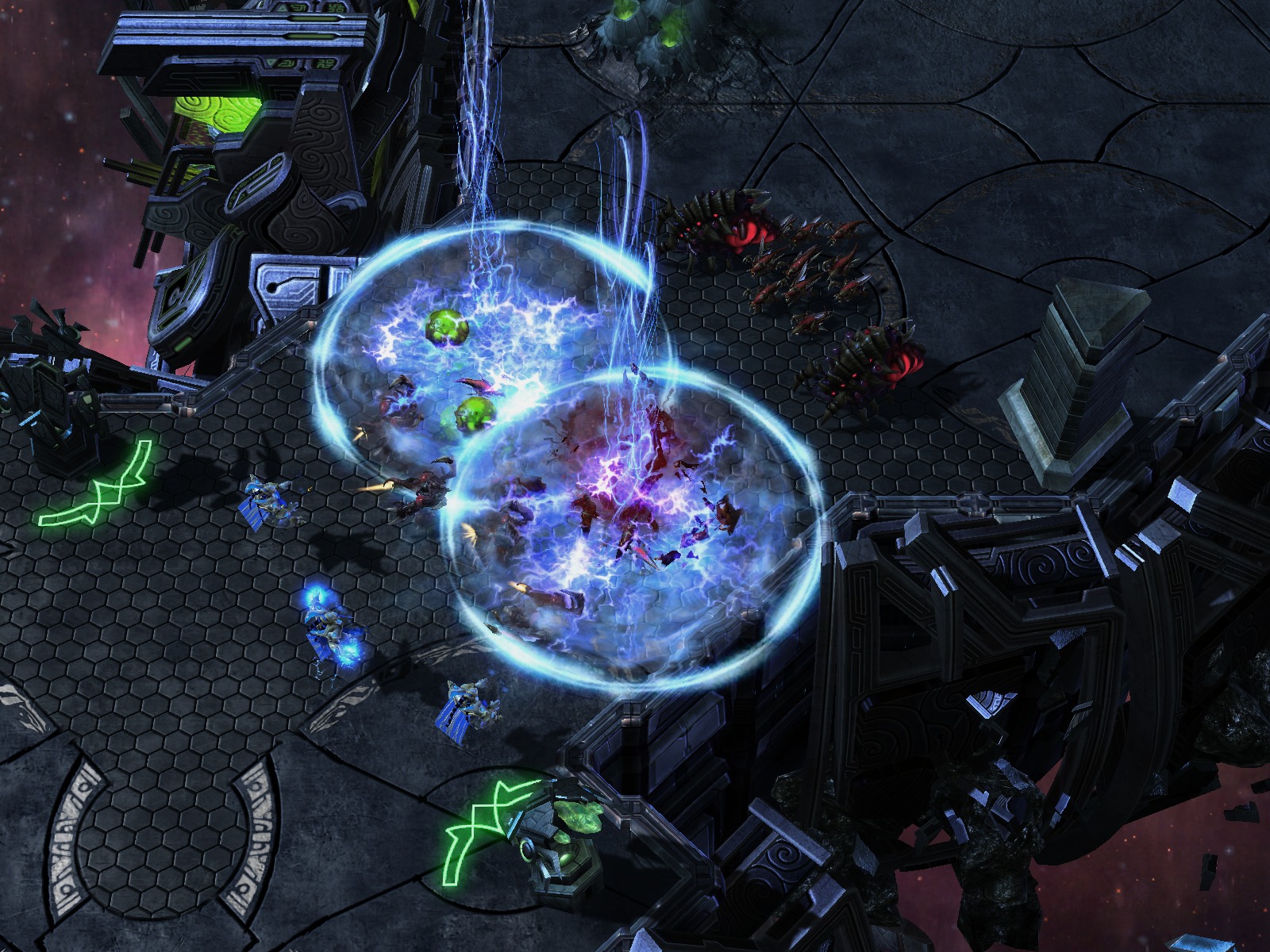 Xel'naga ships were protected by reinforced hulls[2] and sharp crystals.[1] This failed to protect the xel'naga fleet against the attack by the zerg.[2]