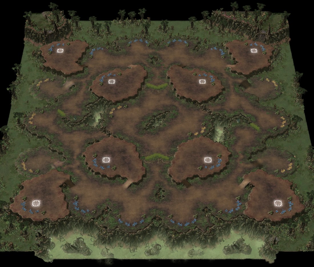 Korhal Sky Island is a 4v4, 8-players map that debuted on ladder in 2013 Season 4 of Heart of the Swarm.