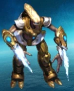 The zealot was effectively the baseline protoss unit, representing a "non wimpy grey alien, wearing ornate power armor and wielding a wicked set of blades." Protoss units higher up the tech tree could deviate from this base design.[2]